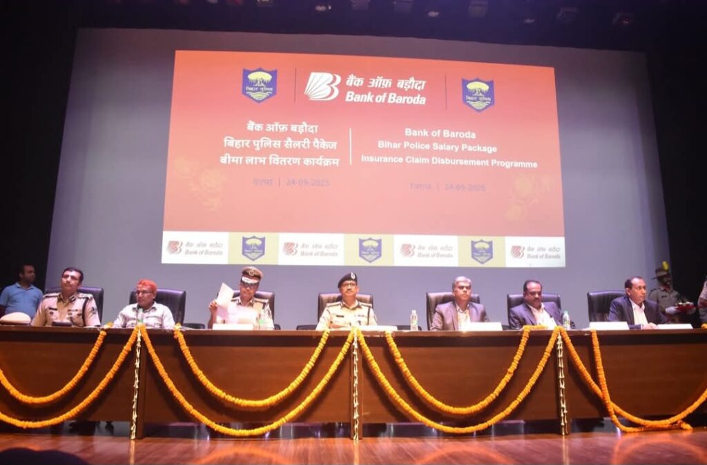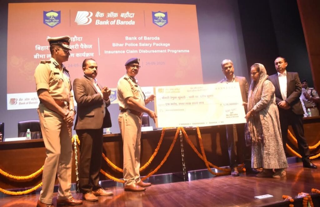 24 सितम्बर, 2025 बुधवार को पटना स्थित बिहार पुलिस मुख्यालय, सरदार पटेल भवन के ऑडिटोरियम में पुलिस महानिदेशक विनय कुमार द्वारा बैंक ऑफ बड़ौदा सैलरी पैकेज के अंतर्गत बैंक ऑफ बड़ौदा के वरीय अधिकारियों की उपस्थिति में 20 शहीद एवं दिवंगत पुलिसकर्मियों के आश्रित परिवारों को 10 करोड़ रुपये की बीमा राशि प्रदान की गई। यह पहल वीर शहीदों/ दिवंगत पुलिसकर्मियों को श्रद्धांजलि अर्पित करने के साथ-साथ उनके आश्रित परिवारों को आर्थिक संबल और सुरक्षा का भरोसा देने का प्रयास है।