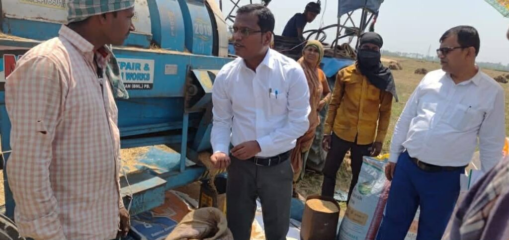 वरदान न्यूज मधेपुरा।आज दिनांक 04 अप्रैल 2026 को मधेपुरा जिला अंतर्गत गम्हरिया प्रखंड के कोडिहार तराचे पंचायत स्थित कौड़िहार राजस्व ग्राम में गेहूँ फसल कटनी प्रयोग का सफलतापूर्वक निरीक्षण एवं संपादन किया गया। यह कार्य जिला सांख्यिकी पदाधिकारी, मधेपुरा एवं प्रखंड विकास पदाधिकारी, गम्हरिया के संयुक्त निर्देशन में संपन्न हुआ। प्रयोग के दौरान चयनित किसान श्री सुबोध कुमार के खेत (प्लॉट संख्या 50-2196) में 10 मीटर × 5 मीटर क्षेत्रफल में वैज्ञानिक सैम्पलिंग पद्धति के आधार पर फसल कटनी प्रयोग किया गया। इस प्रक्रिया का उद्देश्य गेहूँ उत्पादन के सटीक एवं विश्वसनीय आंकड़े प्राप्त करना था। प्रयोग के दौरान किसान सलाहकार श्री अमलेश कुमार एवं स्थानीय ग्रामीण भी उपस्थित रहे। फसल कटनी कार्य को पूरी पारदर्शिता एवं गुणवत्ता के साथ अधिकारियों की देखरेख में संपन्न कराया गया। कटनी उपरांत प्राप्त उत्पादन के अनुसार 10×5 मीटर क्षेत्रफल से कुल 14 किलोग्राम 250 ग्राम गेहूँ प्राप्त हुआ, जिसके आधार पर प्रति हेक्टेयर लगभग 28 क्विंटल उत्पादन का आकलन किया गया है। यह प्रयोग कृषि उत्पादन के यथार्थ आंकलन एवं भविष्य की कृषि नीतियों के निर्माण में सहायक सिद्ध होगा।