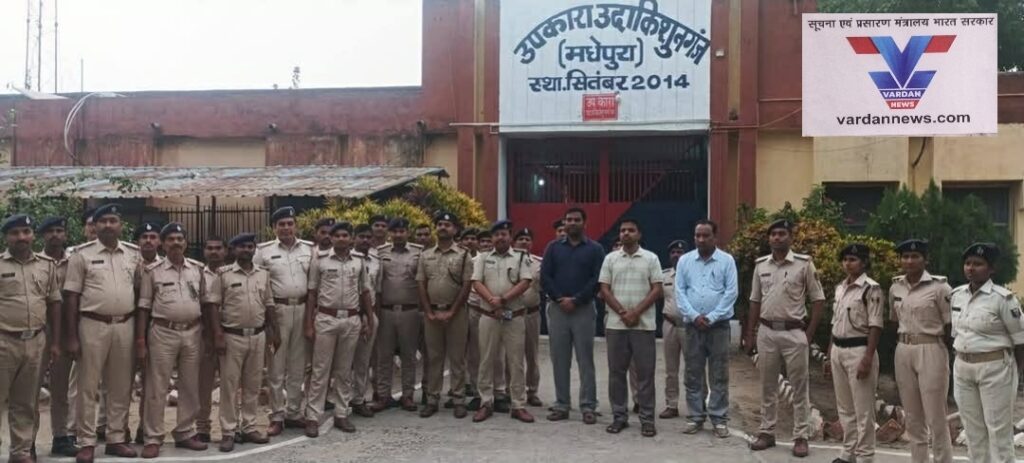 जिले में विधि-व्यवस्था एवं कारा सुरक्षा को सुदृढ़ बनाए रखने के उद्देश्य से दिनांक 17 अप्रैल 2026 को पूर्वाह्न 4:50 बजे से 5:38 बजे पूर्वाह्न में जिला पदाधिकारी, मधेपुरा श्री अभिषेक रंजन एवं पुलिस अधीक्षक, मधेपुरा श्री संदीप सिंह द्वारा संयुक्त रूप से मंडल कारा, मधेपुरा में औचक छापेमारी की गई। छापेमारी में अनुमंडल पदाधिकारी, मधेपुरा, अनुमंडल पुलिस पदाधिकारी मधेपुरा, अन्य पदाधिकारी एवं जिला पुलिस बल के 51 जवान शामिल थे। इस दौरान कारा परिसर के विभिन्न पुरुष एवं महिला वार्डों, बैरकों एवं cctv का सघन निरीक्षण करते हुए सुरक्षा व्यवस्था की व्यापक समीक्षा की गई। तलाशी अभियान के दौरान कोई भी आपत्तिजनक /प्रतिबंधित सामग्री बरामद नहीं हुई तथा CCTV कैमरा कार्यशील पाया गया। इसी क्रम में अनुमंडल पदाधिकारी, उदाकिशुनगंज तथा अनुमंडल पुलिस पदाधिकारी, उदाकिशुनगंज द्वारा भी मंडल कारा, उदाकिशुनगंज का अनुमंडल स्तरीय पदाधिकारी एवं पुलिस पदाधिकारी के साथ सघन छापेमारी की गई। मंडल कारा, उदाकिशनगंज में भी छापेमारी के दौरान कोई भी आपत्तिजनक /प्रतिबंधित सामग्री बरामद नहीं हुई। जिला पदाधिकारी ने स्पष्ट निर्देश देते हुए कहा कि कारा में सुरक्षा व्यवस्था हर हाल में चाक-चौबंद रखी जाए तथा नियमित रूप से औचक निरीक्षण एवं तलाशी अभियान जारी रखा जाए। किसी भी स्तर पर लापरवाही अथवा शिथिलता को कतई बर्दाश्त नहीं किया जाएगा।