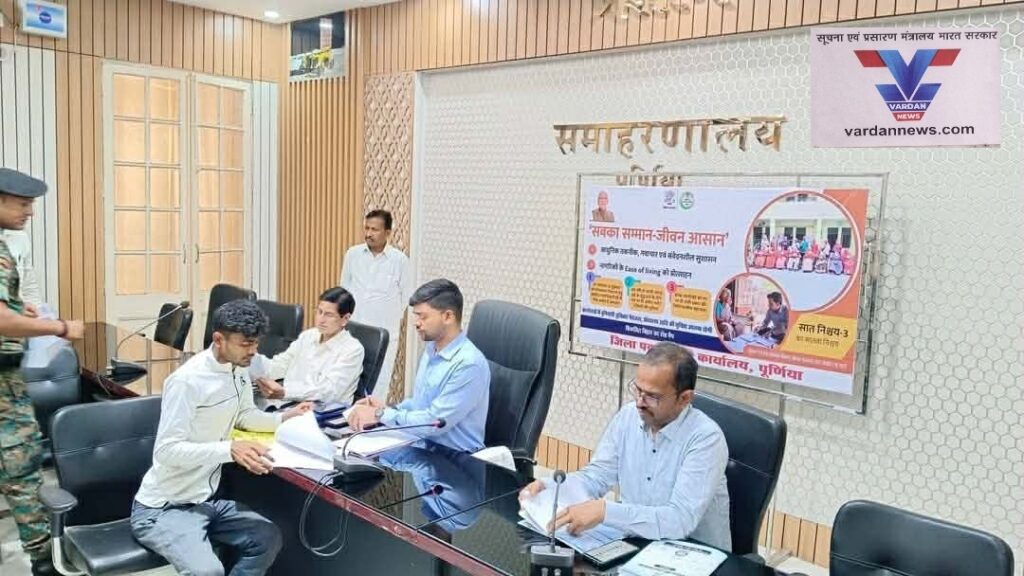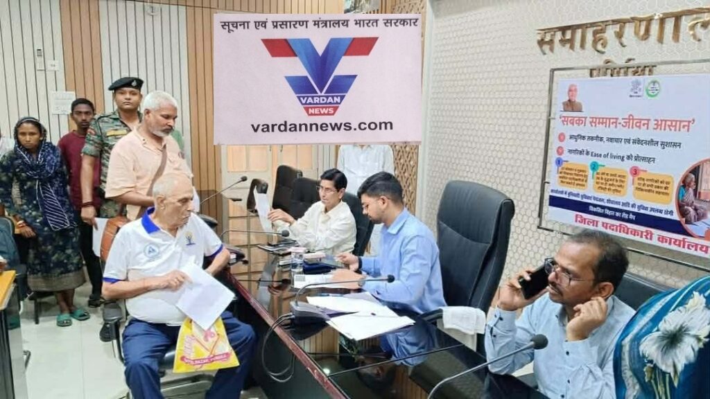 जिला पदाधिकारी श्री अंशुल कुमार (भा०प्र०से०) द्वारा सेवा- संवाद-समाधान अनुश्रवण प्रणाली के तहत सबका सम्मान-जीवन आसान (Ease of Living) कार्यक्रम के तहत शुक्रवार को समाहरणालय स्थिति प्रज्ञान सभागार में आमजनों से सीधे संवाद स्थापित कर उनकी समस्याओं को गंभीरतापूर्वक सुना गया और संबंधित पदाधिकारियों को अंग्रेतर कार्रवाई करने का निर्देश दिया गया। कार्यक्रम के दौरान जिले के विभिन्न प्रखंडों एवं पंचायतों से आए व्यक्तियों द्वारा कुल-26 आवेदन विभिन्न विभागों से संबंधित देकर अपनी-अपनी समस्याएं जिला पदाधिकारी महोदय के समक्ष रखीं।