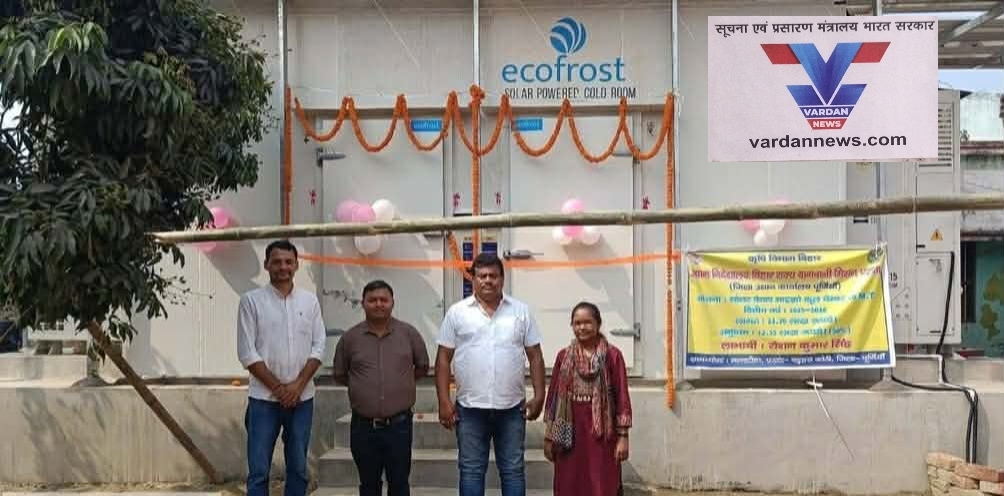 जिला उद्यान पदाधिकारी, पूर्णिया द्वारा उद्यान निदेशालय कृषि विभाग बिहार पटना द्वारा संचालित एकीकृत बागवानी विकास मिशन योजनांतर्गत सोलर पैनल माइक्रो कुल चैंबर 10 मैट्रिक टन का शुक्रवार को भौतिक निरीक्षण किया गया है। यह संरचना सोलर एनर्जी से संचालित शीत गृह है। जिसका क्षमता 10 मैट्रिक टन है। आवेदक का रौशन कुमार सिंह, ग्राम मलडिया, प्रखंड बी कोठी पूर्णिया कुल लगात 2470000.00 चौबीस लाख सत्तर हजार रुपया तथा