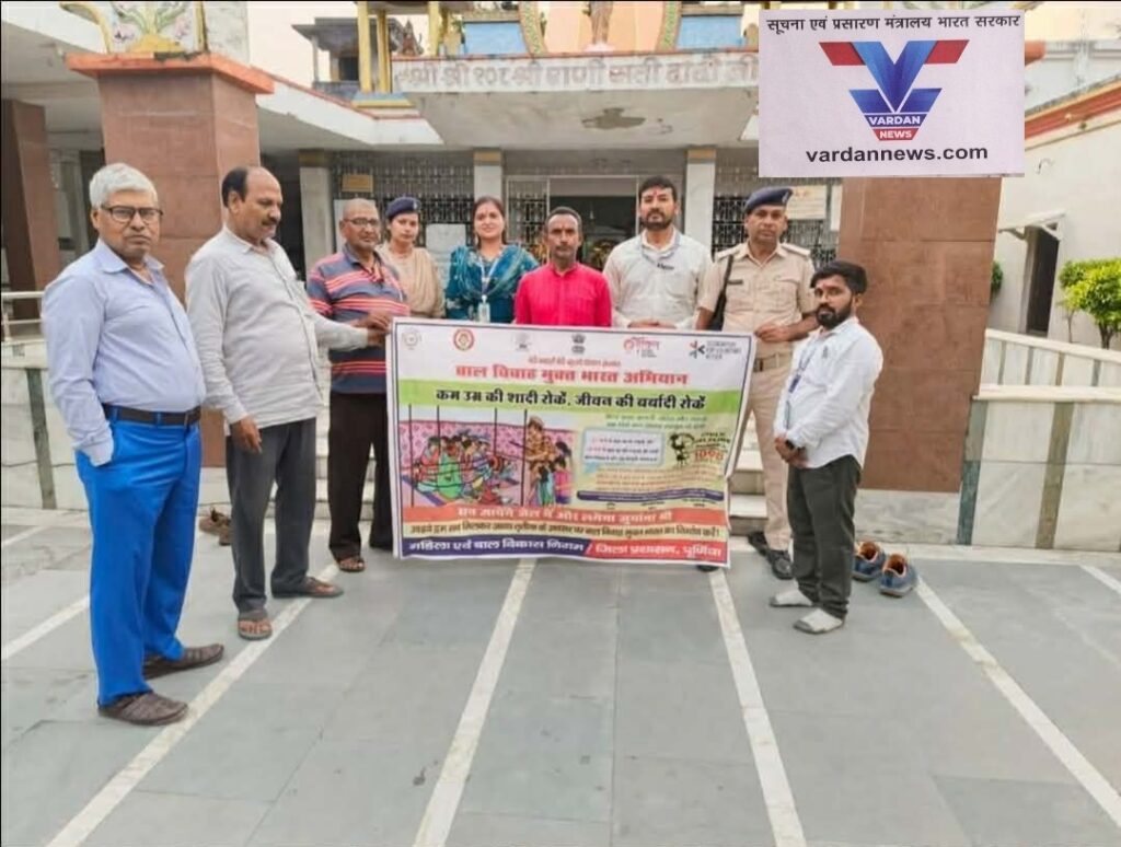 अक्षय तृतीया के शुभ अवसर पर पुलिस अधीक्षक पूर्णिया द्वारा जिला प्रोग्राम पदाधिकारी ICDS पूर्णिया नेतृत्व में एक टीम गठित किया गया जिसमें DHEW के जिला मिशन समन्वयक, OSC केंद्र प्रशासक, लेखा सहायक, दो पुलिस बल की टीम एक टीम गठन किया गया। टीम द्वारा बाल विवाह जैसी कुप्रथा को मिटाने के लिए एक विशेष जागरूकता अभियान विभिन्न स्थलों पर चलाया गया। स्थल: कामाख्या मंदिर पूर्णिया, हरदा मठ मंदिर पूर्णिया, माता स्थान पूर्णिया, पूरन देवी मंदिर पूर्णिया, सिटी काली मंदिर पूर्णिया, लाईन बाजार शिव मंदिर, पंचमुखी मंदिर, आस्था मंदिर रानी सती मंदिर कसबा एवं अन्य प्रमुख मंदिरों में पुजारी से वार्तालाप कर विशेष ध्यान देने हेतु बताया गया और मंदिर प्रांगण में पोस्टर लगाकर लोगों को जागरूक किया गया। टीम द्वारा मंदिर के पुजारियों और आम नागरिकों से अपील की गई कि वे न तो बाल विवाह का हिस्सा बनें और न ही इसे होने दें। बच्चों का बचपन बचाना हम सबकी जिम्मेदारी है। अगर कहीं भी बाल विवाह की जानकारी मिले तो तुरंत सम्पर्क नंबरों :-चाइल्ड हेल्पलाइन: 1098.